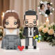 Mysterious White Grey Wedding Dress And Classic Black Suit Couple Brick Figures Personalized Head Brick Figures for Husband and Wife On Wedding Anniversary Souvenir